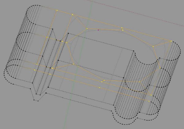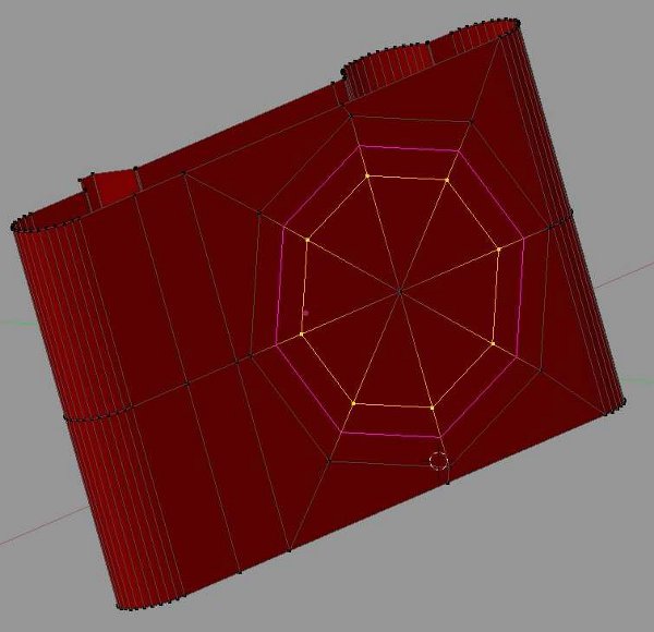 También hemos subdividido el borde que está por encima del botón para construir la geometría en que se necesita construir el agujero para él botón radial más tarde. Esto requiere alguna pre-planificación antes de modelar.