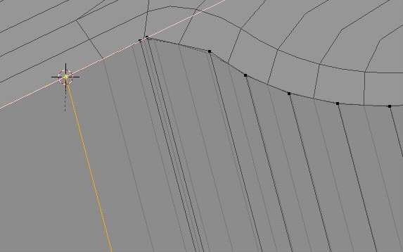 Ahora podemos elegir siempre los mismos puntos en los dos mallas al mismo tiempo. Movemos todos los puntos en el interior de la curva del perfil para formar una estructura más relajada. Utiliza g para él movimiento y presiona x para restringirlo sólo para él eje de las X.