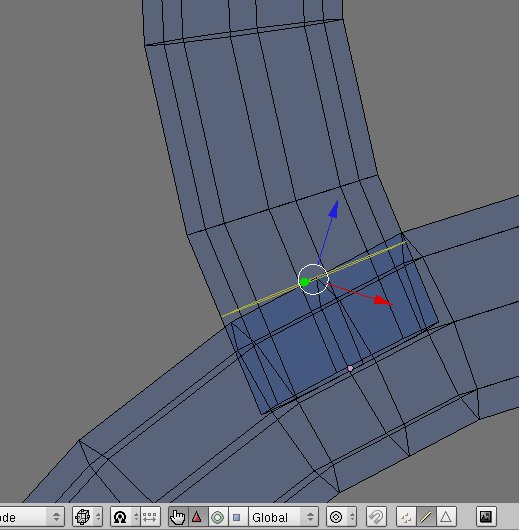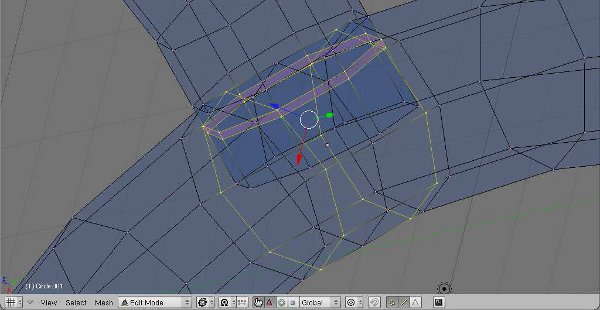 Entre en modo edición[Tab] y cambie a modo selección arista(borde)[Ctrl+T ab, opción 2], y haga algún corte en la malla sólo para refinarlo. Botón derecho para seleccionar la arista y presione [Ctrl+R]. Ahora, click izquierdo dos veces para hacer el corte(una vez para posicionar el corte y otra para cortar) [fig 7].