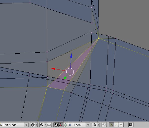 Ahora uniré estos 3 vértices [fig 16], la supresión de vértices creados durante la etapa de corte hasta qué nosotros lo tengamos[fig 17].