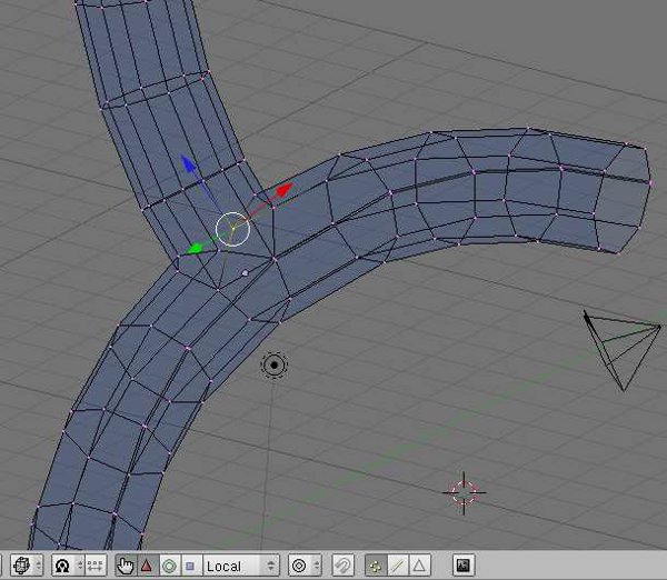 Seleccionar dos vértices que estén cerca uno del otro, uno de cada tubo. Seleccione del tubo vertical en primer lugar, y después del tubo horizontal [fig 10].