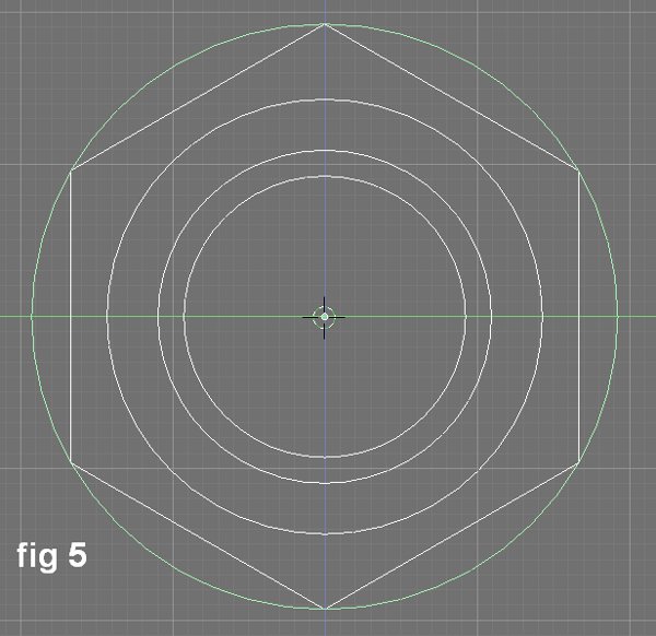 Luego, con el cursor en el hexágonoo y en visión lateral derecha se creó un cilindro con un diámetro de 35.50 y Z = 12. A este cilindro (aunque en realidad no luce como tal) es necesario sustraer otro cilindro (círculo más pequeño como referencia).