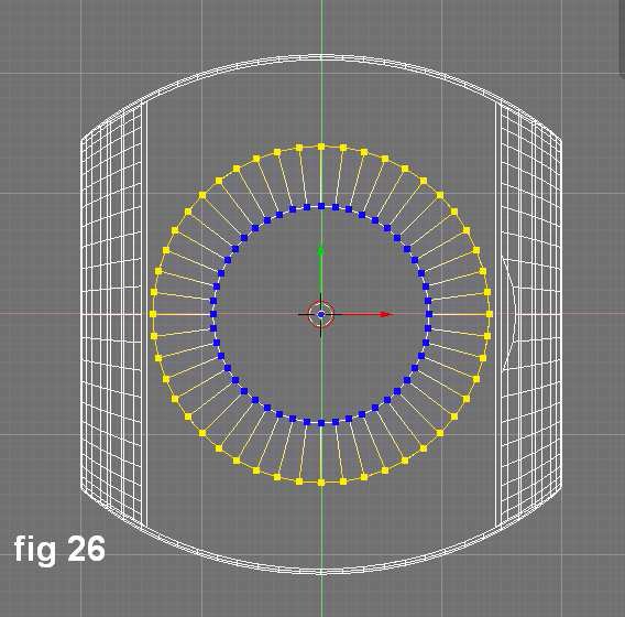 De nuevo, los vértices fueron puestos arriba para corregir dichas cavidades. Un patrón de referencia geométrica para los hoyos de los tornillos se hizo usando la función Rotation/Scaling Pivot fijar PIVOT to 3D cursor.