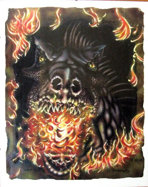 Hola a todos/as, hoy buscando, buscando me he encontrado con un par de dibujos de mi época estoy-enfermo-de-rol-damemas-muereserdo, así que, les echo unas fotografías para compartirlos en esta nuestra comunidad, son del año 98-99. Por cierto, el dragón enjaulado esta plagiado de una miniatura de plomo de la casa denizen, creo que son los de las figuras de chicas semidesnudas, y está hecho con lápiz acuarelable y aerógrafo sobre papel, el otro es aerógrafo y pintura citadel(acrílica)sobre una tela que encontré por ahí,opiniones y críticas siempre bien recibidas.