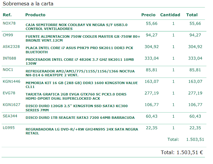 Sí, podríamos hacerlo, pero el presupuesto se incrementaría. He querido darte una base para trabajar que se pueda ampliar, aunque si quieres cambiar tendríamos que revisarlo para saber a cuanto asciende el total y ya te adelanto que no será barato sobre todo si estas pensando en el típico conjunto para procesadores de 6 núcleos como el 3930K o el 4930K.