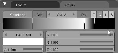 Y éste es el resultado de esta configuración. Hay un suave desvanecimiento del color blanco en el negro y puesto que hemos aplicado esta configuración al canal alfa el objeto desaparece y se desvanece con el fondo.