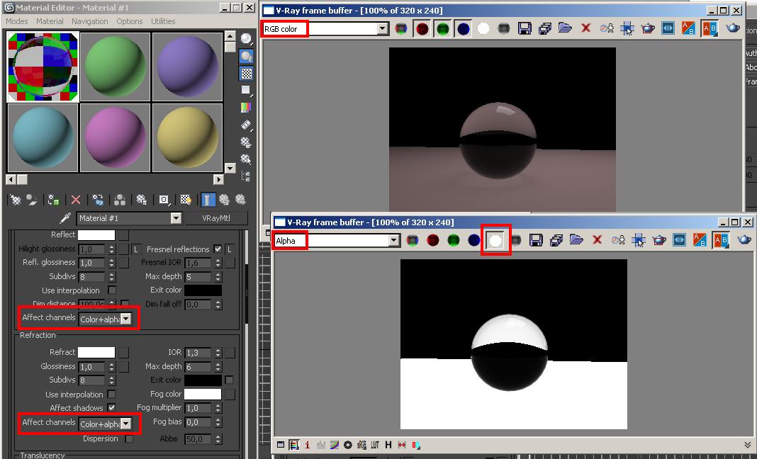 Necesito poder renderizar el cristal y exportarlo como (*.png) con alpha para usarlo como un objeto independiente y montarlo con After Effects en otro escenario creado posteriormente en 3DMax.