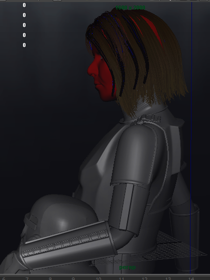 Dejo un pantallazo del visor en visión de cámara, 3 cuartos y perfil, la iluminación es sencillisima, una Key en la parte izquierda sup, una fill en la derecha inf y una bounce que hace las veces de ambiental.