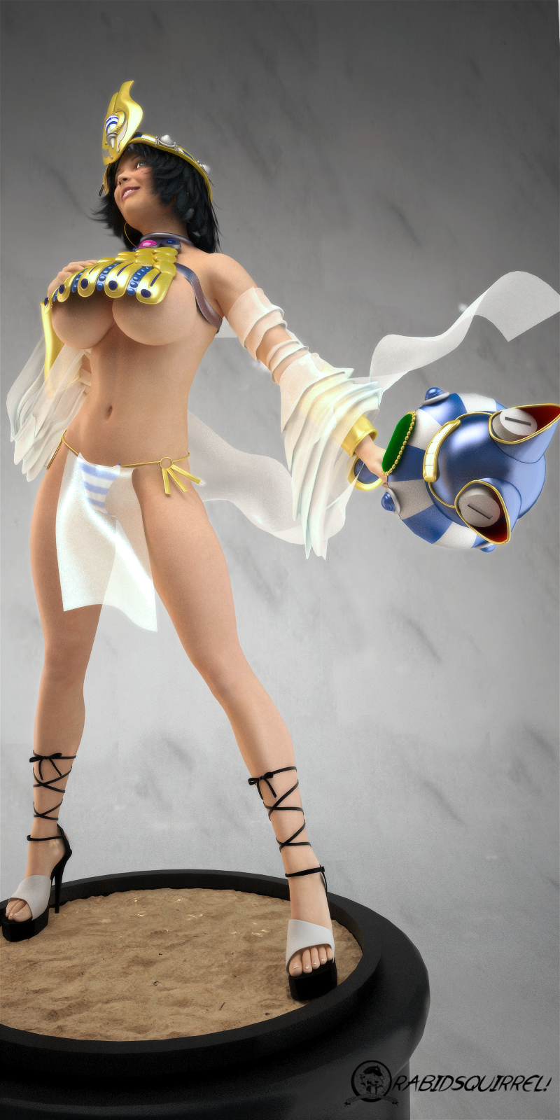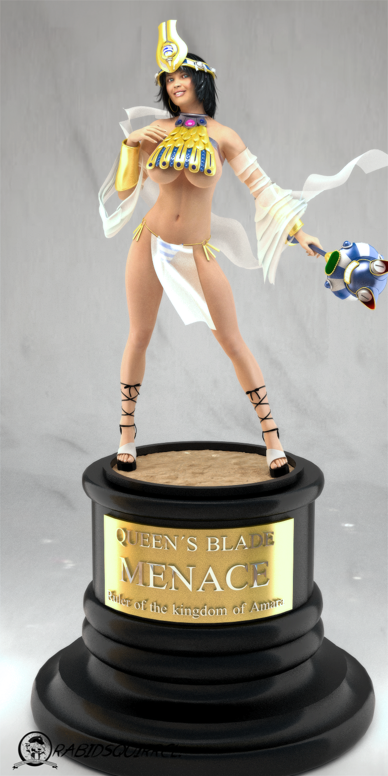 Este render es una interpretación con facciones realistas de un personaje del anime Queens Blade, y el acabado es para qué se vea como una estatuilla coleccionable. El render es en V-Ray, y debo mencionar que es el primer render que me satisface hacer en este motor, pues soy más Mental Ray-ista. La modelo es de DazStudio como siempre para ahorrar tiempo, las piezas de ropa, el mazo y la base, así como los materiales y luces son mios.