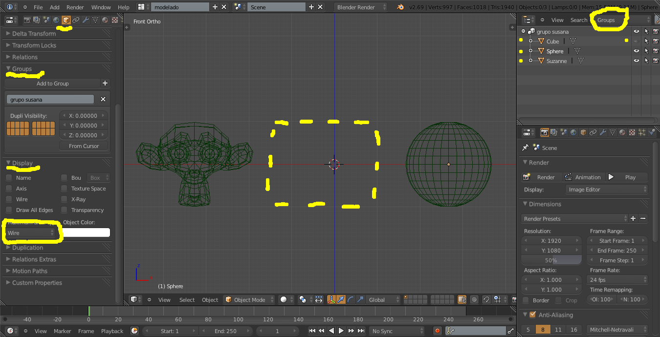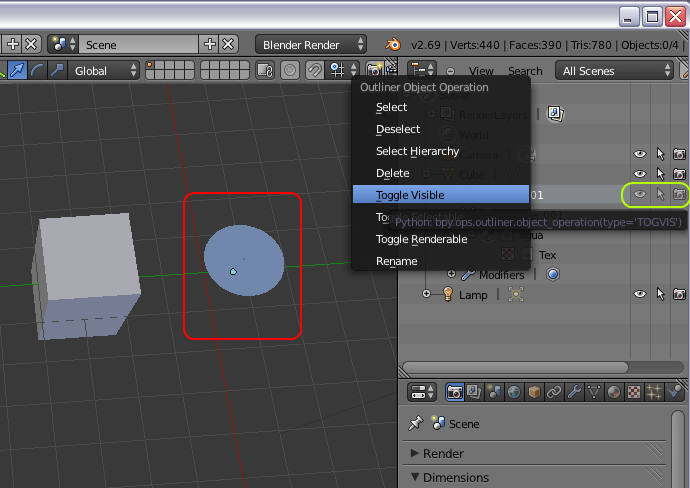 Si seleccione el objeto y presionas letra H el objeto se oculta y no carga la escena. Alt+H para volverlo a ver.