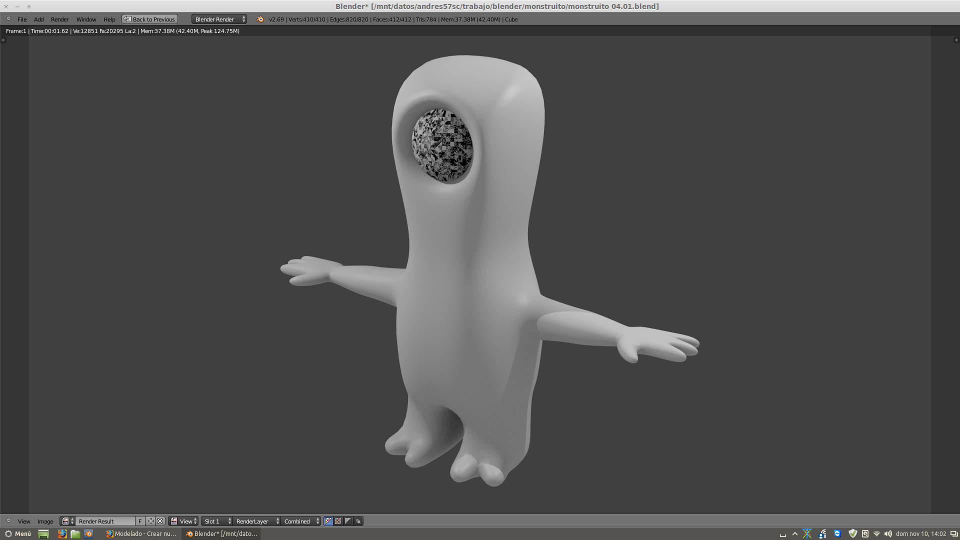 Hola muchachos, mirad, a partir de una misma Maya (un cubo) he creado un cuerpo sencillo, luego en edit mode he creado una UV Sphere, pero se ve que algo hay mal al renderizar: