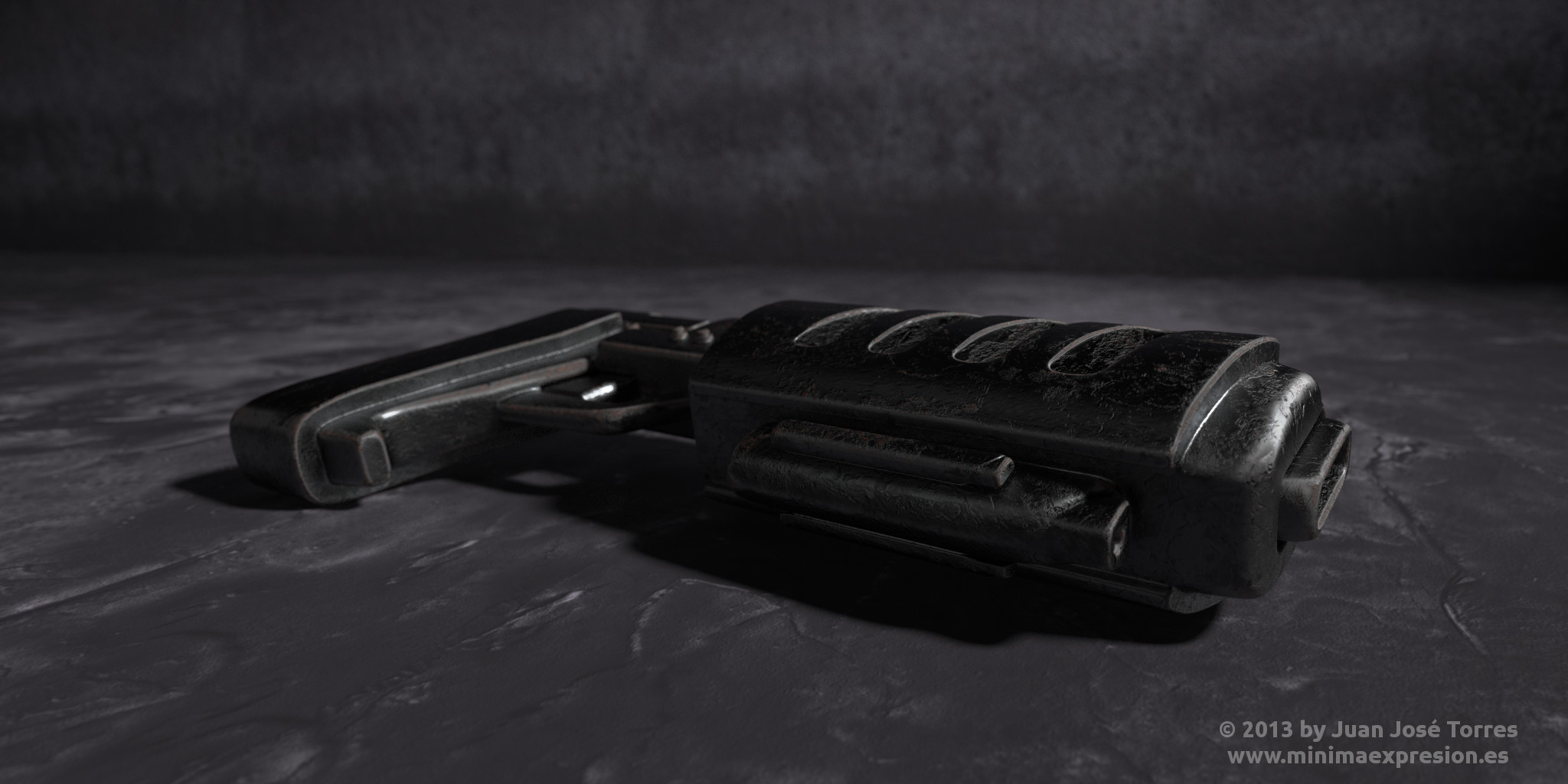 Sacando tiempo de debajo de las piedras, he empezado a texturizar el arma. Aún le faltan algunos detalles, pero de momento no tiene mala pinta.