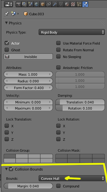 Estoy practicando con Bender game y para ello he definido un objeto como cuerpo rígido y otro, el suelo, como estatico. La idea es que cuando el cuerpo rígido llegue al suelo el comportamiento del primero sea, dentro de lo posible, lo más parecido a normal sin tener que definir dichonormal como una serie de curvas que simulen el efecto de los rebotes amortiguados.