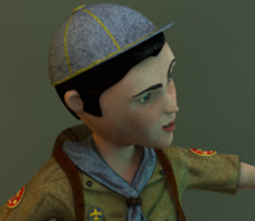 Pues lo skine en Maya por lo que es cierto que la articulación se ha endurecido un poco, pero vamos lo suavizo echando leches, tiene un buen Vertex Paint para solucionar los pesos el Maya. Lo de la pistola en manos de un niño, si es fuerte, pero espera a ver la imagen final, de aquí me llevan a la López ibor, sobre lo del modelado de los brazos y cara, la verdad es que buscaba Trazos lisos, lejos de marcar anatomía, carita de gota, brazos y piernas cilíndricos, para que contraste con los zombies que, si tendrá más volumen anatómico, pero lo bueno de estar en un wip, cuando veamos el contraste con los otros personajes si vemos que no funciona, se le mete musculatura en los brazos y en la cara al nene y solucionamos el problema.