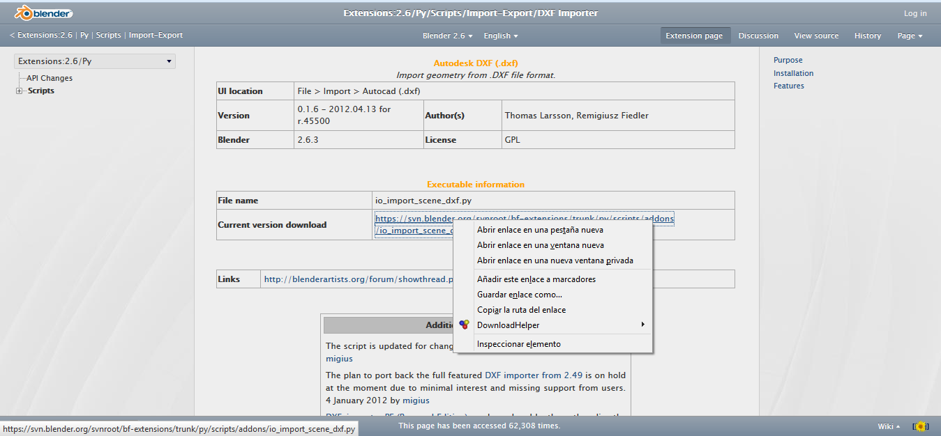Hola muy buenas. Estoy intentando descargar un addon desde la blenderwiki y se me abre una página de código, no he descargado muchos, pero normalmente se me ha descargado un archivo.py que lo meto en la carpeta y funciona perfectamente.
