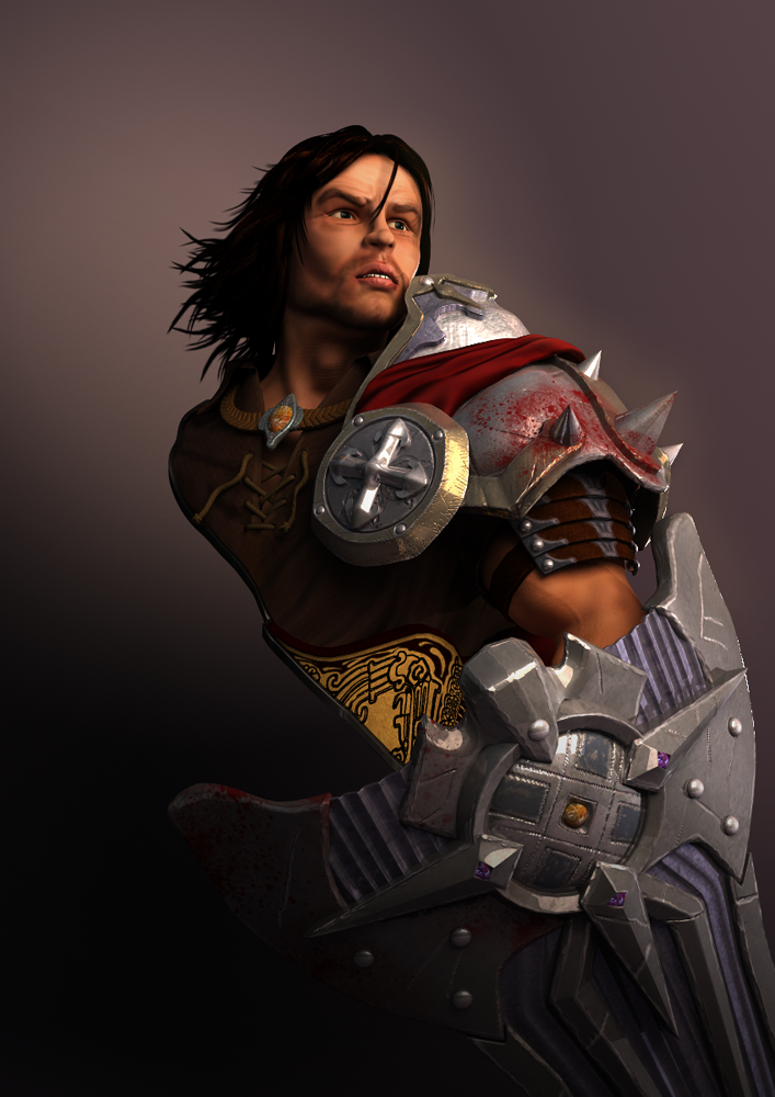 Fíjate, yo de lo más contento que estoy es de la cara, me quedó como buscaba marcando los rasgos del concep (mentón y pómulos prominentes, el orbicular de la boca marcado, etc), los fallos que no pude reparar por tiempo fueron, la textura del brazo que queda plana y mata el normal, los mapas del escudo que quedó al final con un aspecto de plástico que tira para atrás, no me desanimo ni mucho menos, mi trabajo lo veo bien, pero tiene defectos a paladas, para la próxima será.