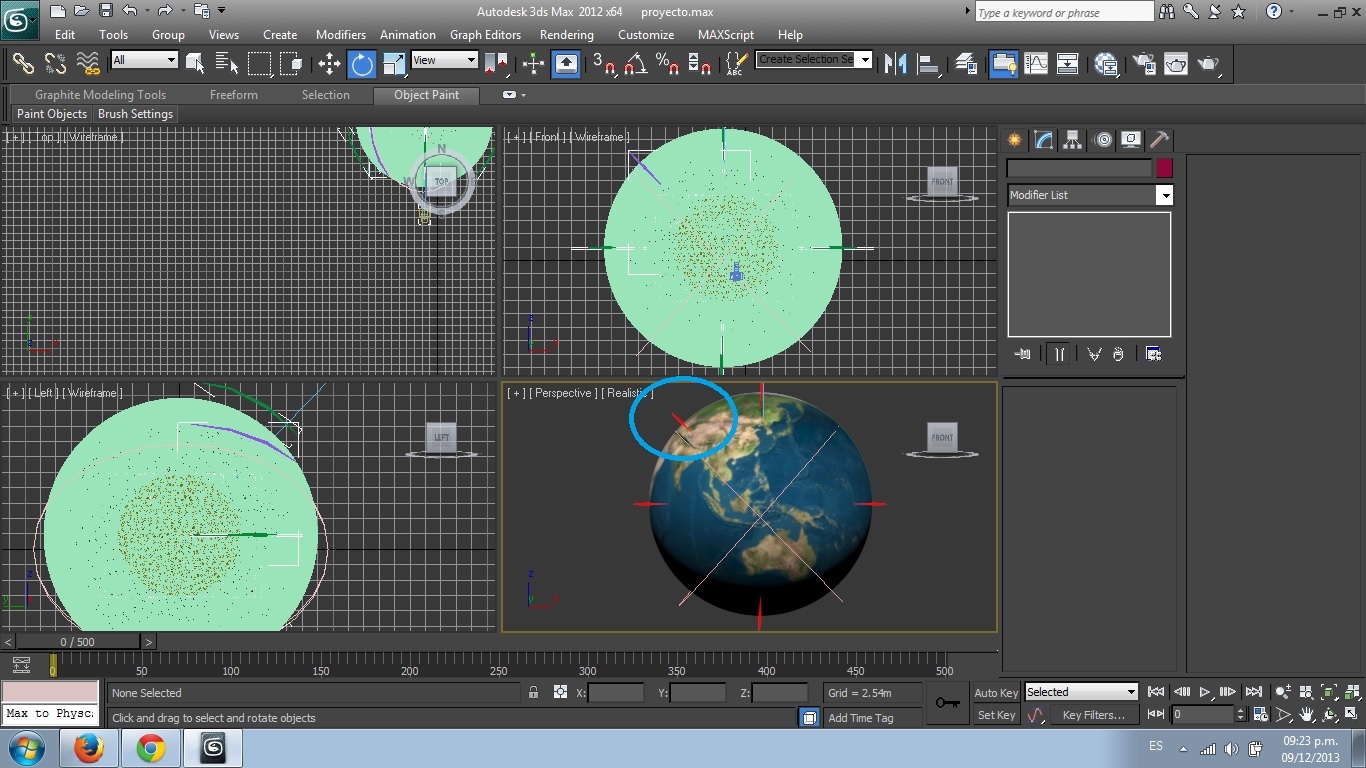 Pero si no comenzaste así, es más fácil crear una caja, centrarla a la tierra, linkear los objetos a ella, rotar como quieres, y eliminarla.