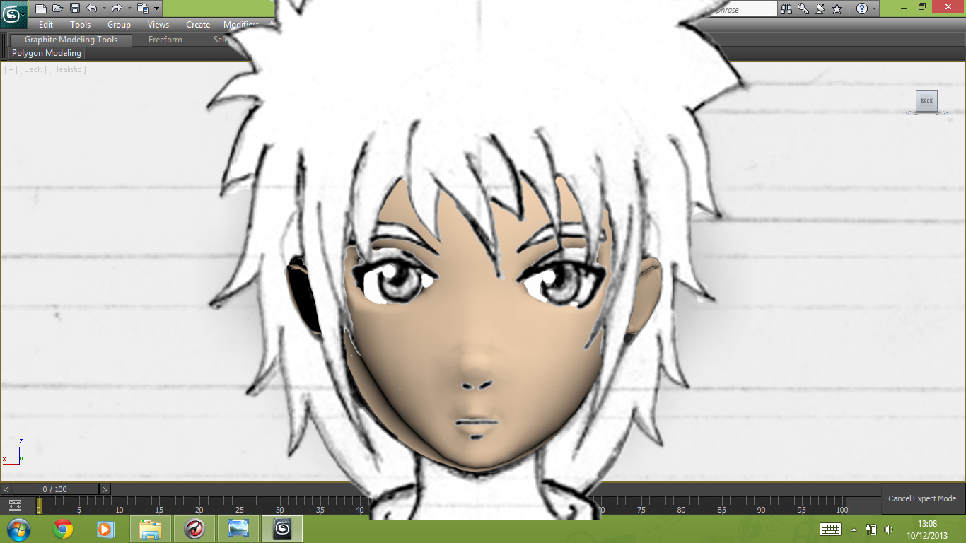 Voy a intentar hacerlo más Low Poly posible, aunque no va a ser Low Poly como tal. Según tengo entendido un Low Poly estaría formado por 2500/3000 polígonos y aquí, solo en la cabeza ya tengo casi 5000 y aún me faltaría el cuerpo y la ropa. He visto por aquí modelos de más de medio millón de polígonos hechos por ZBrush creo y ni de lejos quiero llegar a ese número de polígonos. Más que nada porque después lo quiero exportar a un Game Engine como es Unity para trastear con él, con lo cual cuantos menos polígonos mejor, pero también quiero que haya un mínimo para qué el personaje se parezca lo máximo posible al dibujo o por lo menos que se intuya qué es un personaje estilo anime.