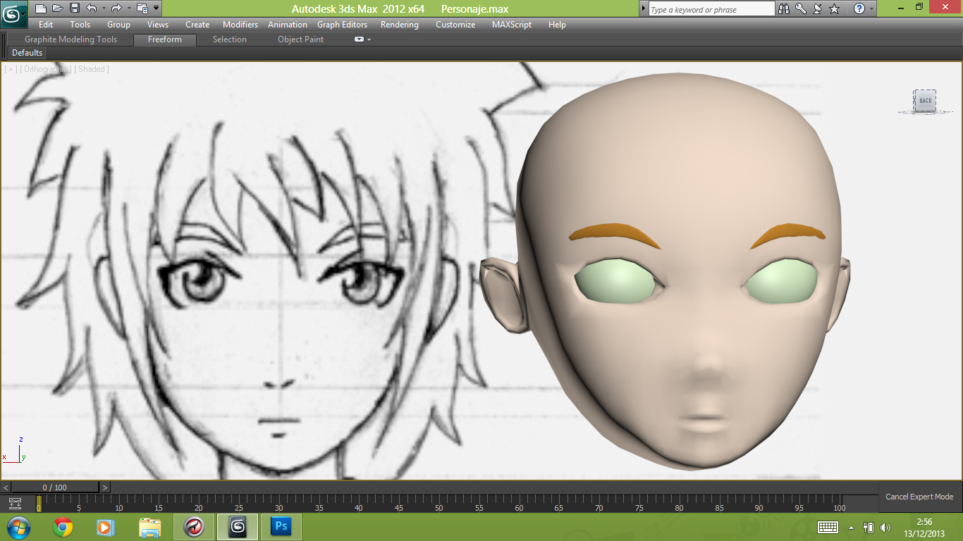 El caso es que ya tengo más o menos la cabeza creada, me faltaría el tema de los ojos y la boca, pero de momento he realizado el modelado general de la cabeza y bueno, no creo que vaya tan mal.