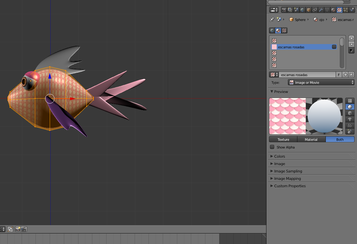 Bueno, el otro día estaba trabajando en las texturas de un pez, son unas escamas rosadas. Todo iba perfecto, UV mapping tal cual lo estaba viendo en el tutorial que conseguí. Voy a modo texturizado y todo se ve perfecto tal cual quería sin embargo, al renderizarlo (de prueba) no se ve nada igual a lo que yo quiero alguien sabe por que puede ser que me esté quedando así (adjunto imágenes).