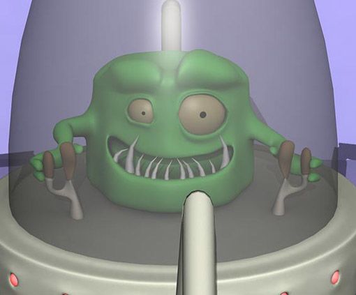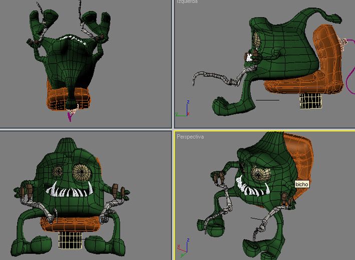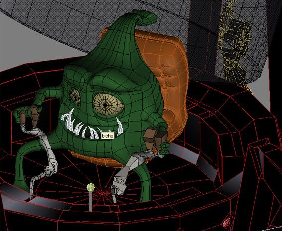 Ostias, que pasada. ¿piensas animar eso? Al bichejo le daría self-ilumination, no sé cómo le llamáis en 3dsmax, que el material tenga algo de auto iluminación.