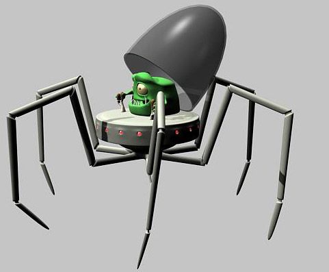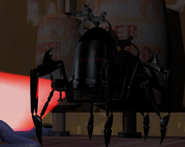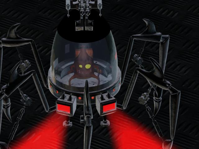El dragón lo dejo parado por ahora, y cambio de época. Un bichejo que maneja un robot araña. Siento que este tan oscuro, pero ahora me tengo que ir, ya lo pongo mejor otro día. Un saludo.