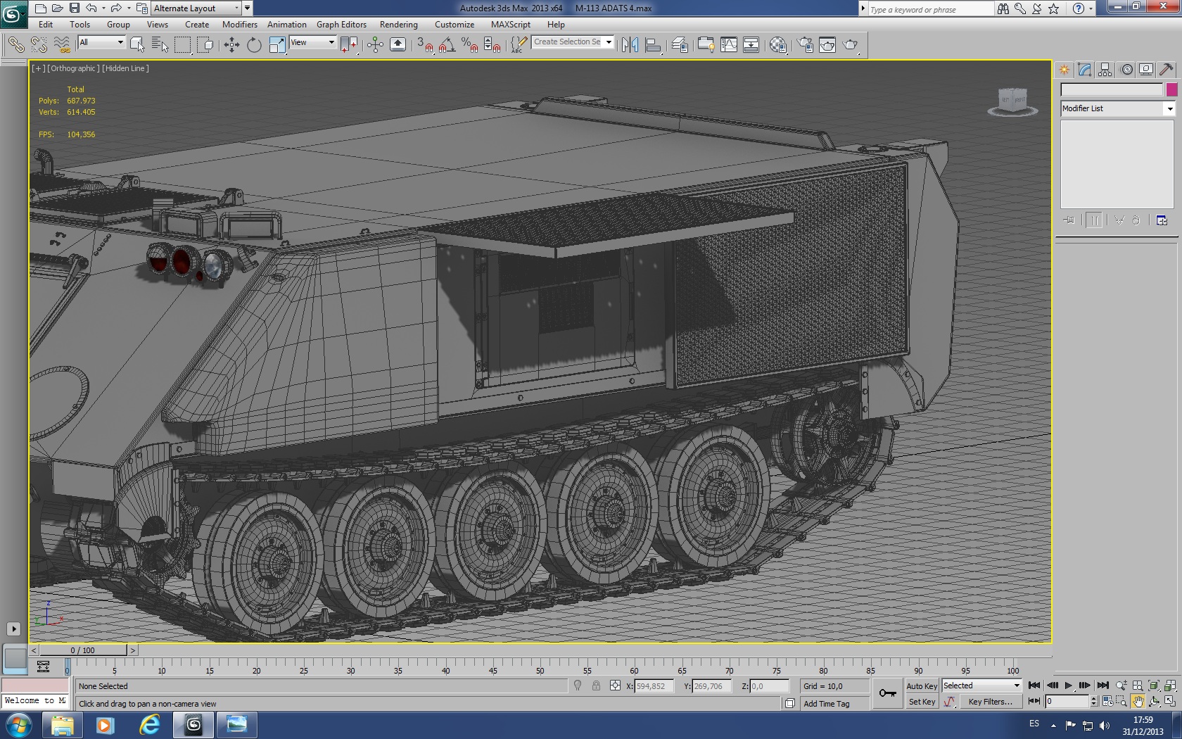Sí, otro M-113. Pero esta vez es el más maqueado de todos, hasta me tocará remodelar las orugas, ya qué usa otro eslabón distinto. Es canadiense y lleva unos peasos misiles de narices. Por ahora poca cosa, le he modelado las puertas laterales que dan a los equipos del sistema. Son abatibles hacia afuera, aunque dentro no hay nada, más que el hueco donde encajan, pero que en un futuro s epodría modelar todo el interior sin problemas.