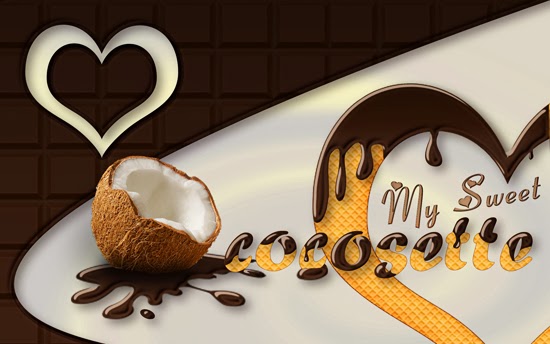 14. A continuación, Archivo/Colocar y seleccionamos coco.jpg. Lo redimensionamos y situamos sobre la salpicadura realizada anteriormente aplicándole una mascara de capa para conseguir el efecto de hundido en la salpicadura de chocolate.