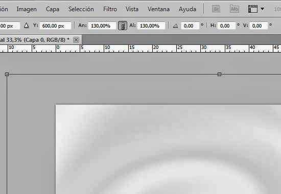 4. Control+T para escalar capa, click sobre la cadena para mantener proporción y escalar hasta un 130% para después recolocar el punto central del remolino en la parte baja del lienzo en donde más tarde colocaremos el texto.