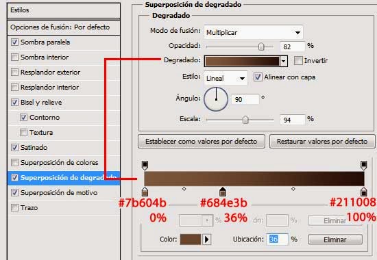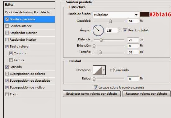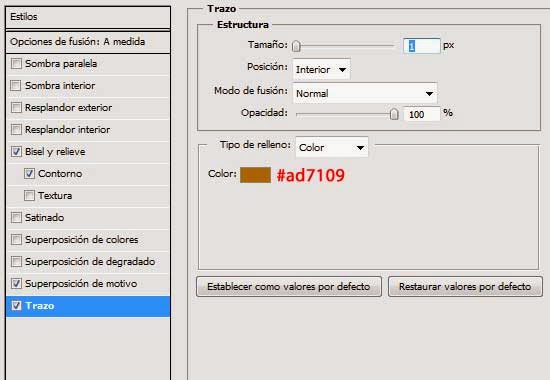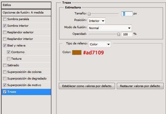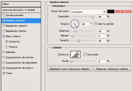 11. Aplicarle a esta capa los Estilos de capa que se muestran a continuación: