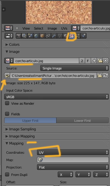 En TEXTURE > Image te aseguras que la ruta de la imagen la tienes bien seleccionada.