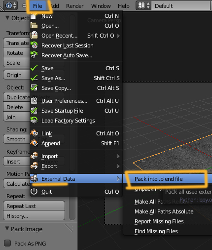 O desde FILE > External Data > Pak.into blend file si tienes varias y lo quieres hacer todo de golpe.