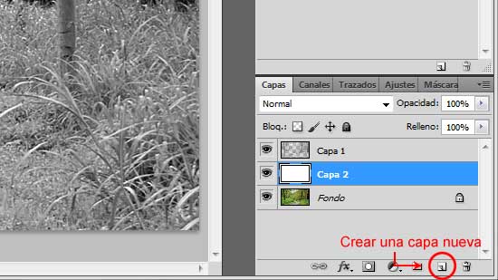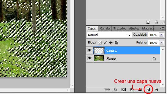 Regresa a la paleta de Capas y haz clic sobre el icono Crear una capa nueva.