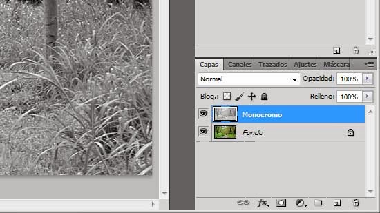 Seguidamente clic derecho sobre la Capa 1 y selecciona la opción Combinar hacia abajo con Capa 2. Renombra esta nueva capa como Monocromo.
