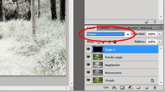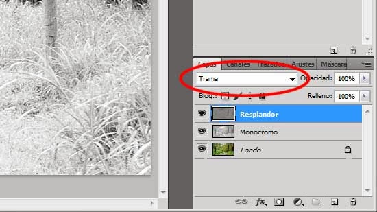 Cambia el Modo de fusión de la capa Resplandor a Trama.