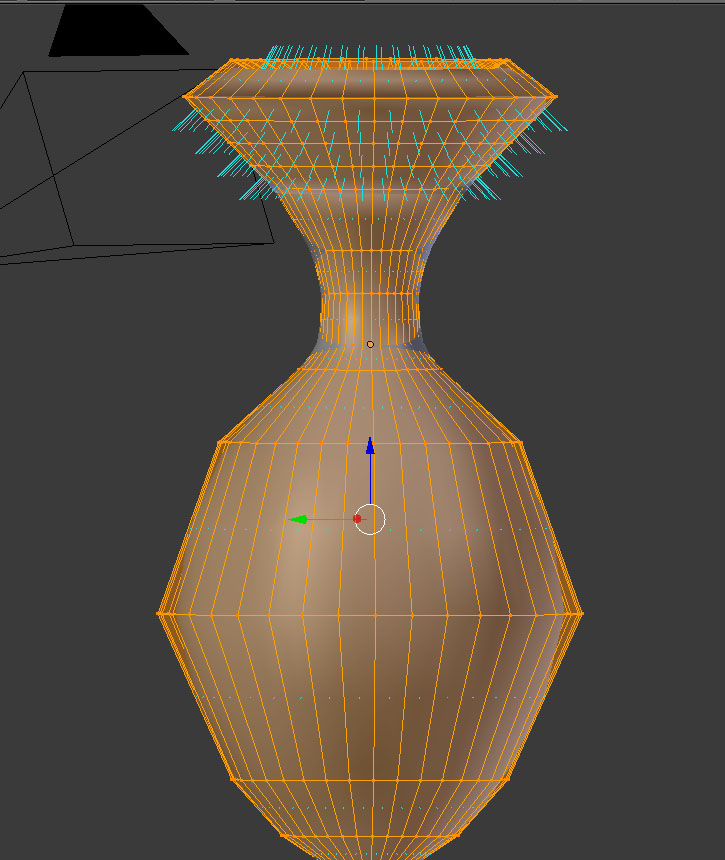 Hola, haciendo un ejercicio delas normales. Ocurre que en la qué hago yo aparecen las normales en la parte superior, pero no en la de abajo, además que en el cuello hay una especia de sombras, que al renderizar se ven muy claramente.