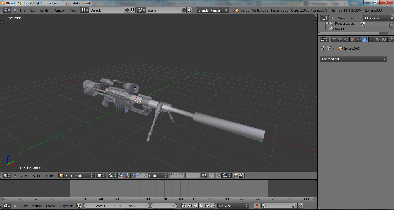Ya qué estoy diseñando armas para mí proyecto de juego pero el problema es que ya llevo 7386 faces y 7578 verts.