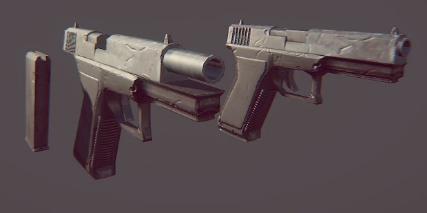 Aparte de si el arma estará en primera persona, debes pensar para qué plataforma y qué público ira dirigido el juego, te pongo un ejemplo, hace tiempo estuve en un proyecto indie que no salió adelante, era un juego de supervivencia con Zombies, con muchos de ellos, así que, teníamos que ahorrar lo máximo posible en los modelos, y cómo era en tercera persona y las armas no se verían de cerca, decidimos hacer las armas de una calidad más bien baja, aquí tienes una imagen: