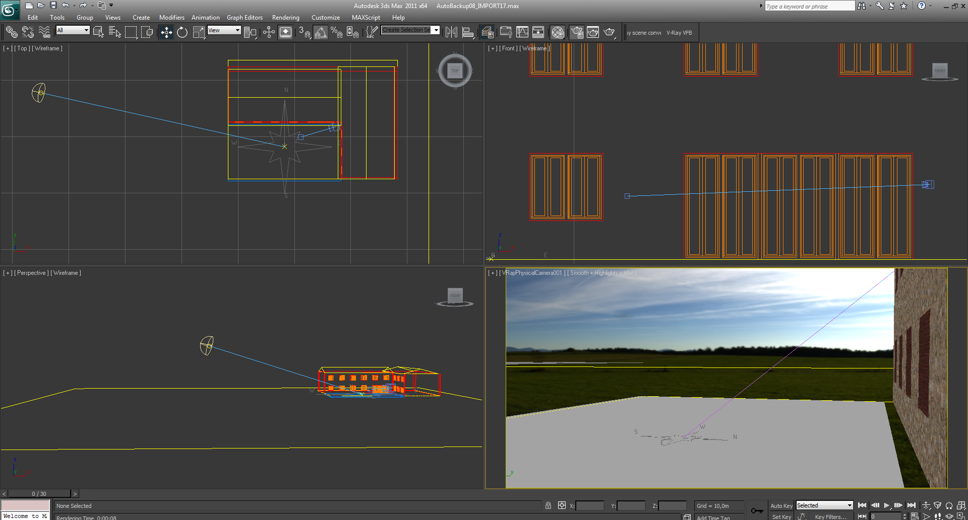 He aplicado un VrayHDRI a mi escena. He configurado el HDRI en materiales y lo he aplicado al ENVIRONMENT en Rendering. Necesito que aparezcan las sombras reales de una zona concreta de mi ciudad a una hora concreta así que, he añadido también un Daylight System y lo he geolocalizado.