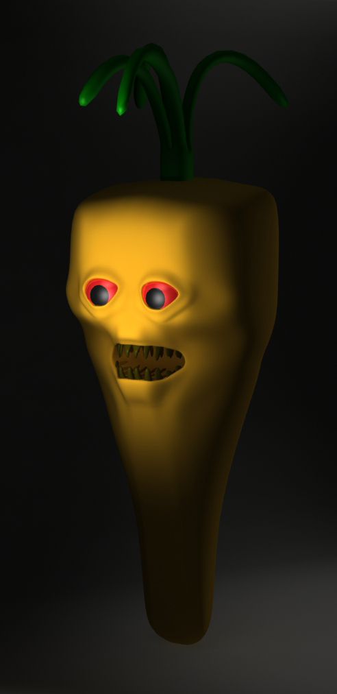 El base mesh esta terminado, sigue aplicarle el modificador UVW Unwrap y luego exportarlo a ZBrush y editarlo para darle más detalles a la zanahoria asesina, a ver cómo me va.