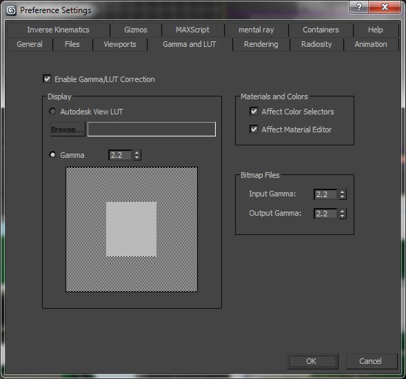 (La gamma está en Customize > Preferencias > Pestaña Gamma and LUT).