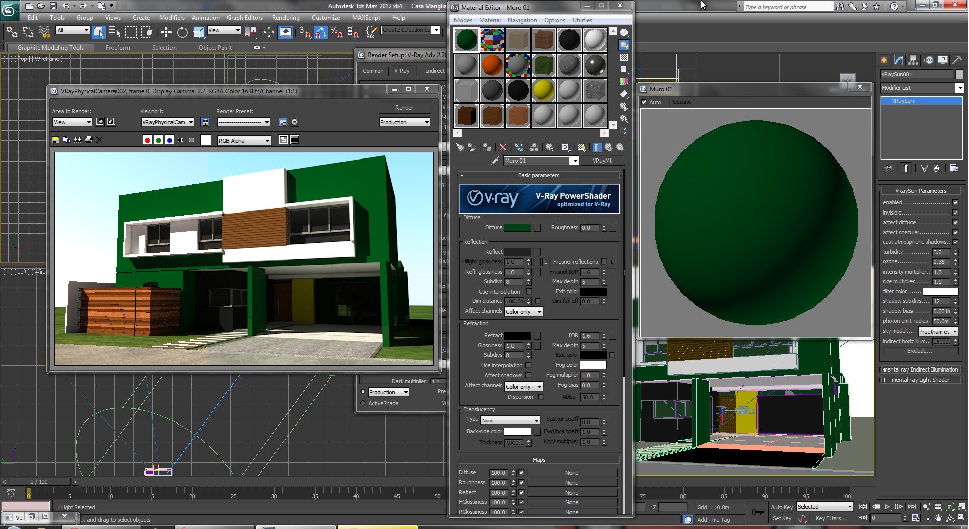 Adjunto un ejemplo con color verde. Observen cual es el color renderizado y a la derecha el color de diffuse en la pelota del material.