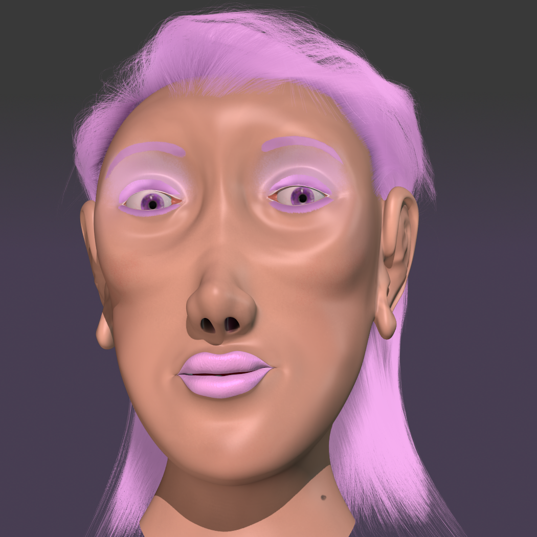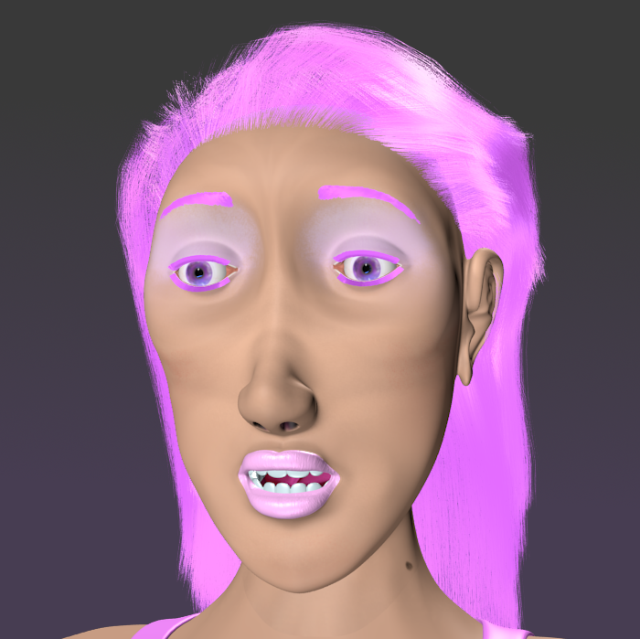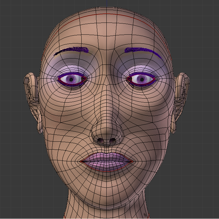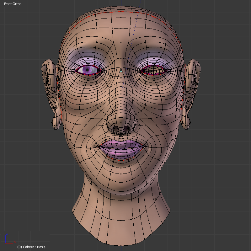 Buenas, aquí dejo un par de imágenes de la cabeza qué estoy haciendo a partir del ojo que uso de avatar que modelé hace unos meses. Está hecha de cabeza, sin referencias, usando técnicas de modelado poligonal. El objetivo era hacer una cabeza topológicamente correcta con la qué poder practicar animaciones faciales que es lo que falta por hacer. El modelado y Rig se ha hecho con Blender y el texturizado con Gimp. Las partes de pelo están hechas con sistemas de partículas. La malla es cerrada, excepto por el cuello y consta de 4.070 polígonos de 4 aristas, los globos de los ojos que son objetos independientes tienen 144 cada uno.