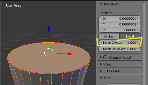 En cuanto al Crease, eso es sólo para él subsurf. ¿Has probado lo que te he dicho primero? En principio debería funcionar sólo aplicando Smooth a las caras que te interesa.