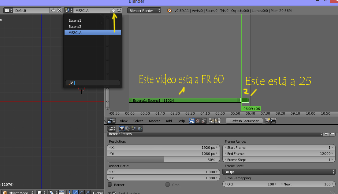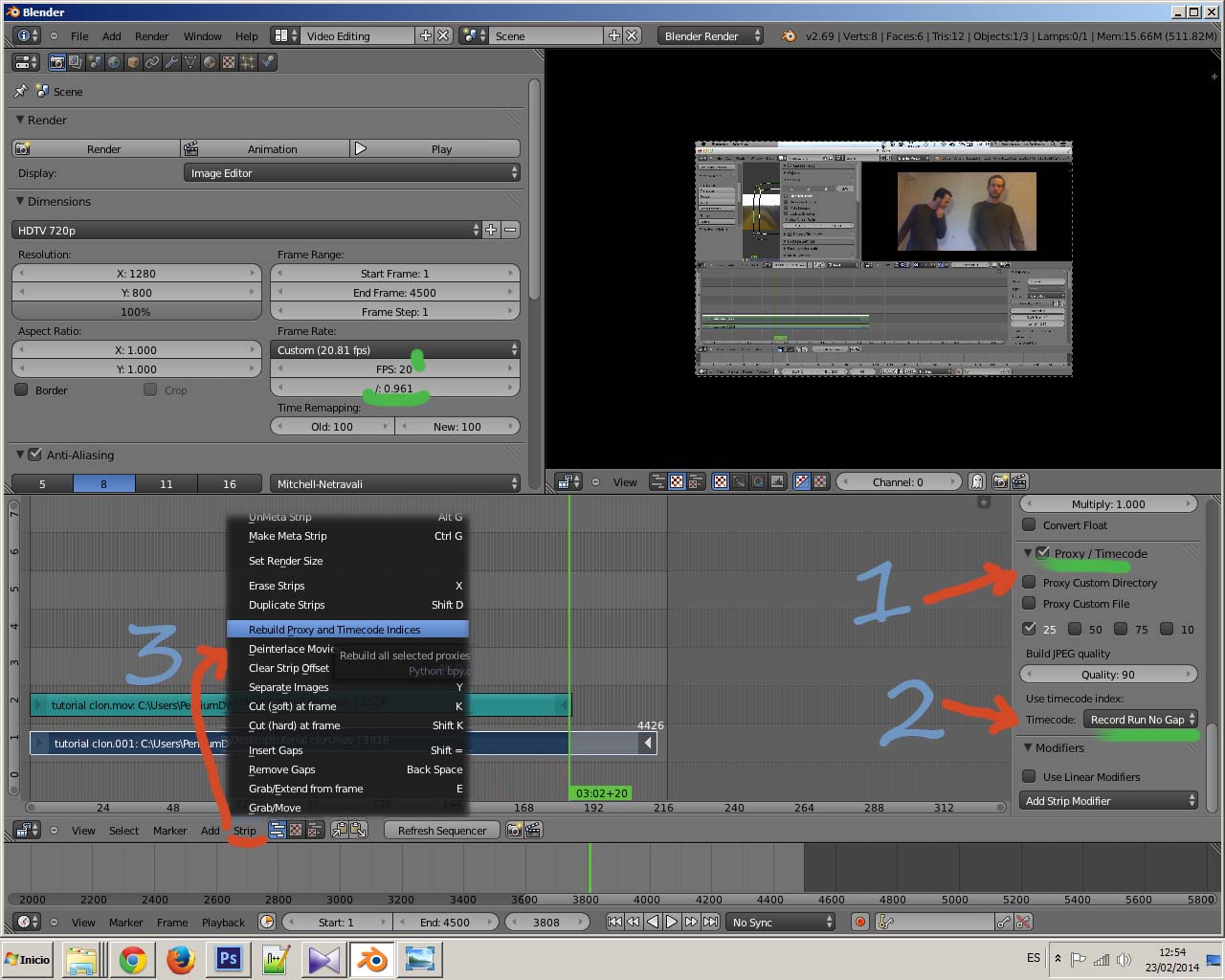 Estoy grabando algunos video-tutoriales de cómo realizar algunos VFX básicos con el vse de Blender. Hasta aquí perfecto. Hago el screncast con QuickTime (uso mac) y el archivo que me produce es un.mov. Ahora lo que quiero hacer, antes de subirlo a Youtube, es agregarle una introducción que hice con el mismo Blender. Antes esto lo hacía con otros editores, pero el otro día me dije a mí mismo, vamos a hacerlo directamente en el vse de Blender. Aquí es cuando aparece el problema. Cuando agrego el video del video-tutorial al vse de Blender, el sonido y el video van totalmente asíncronos. El tiempo que dura el audio es el tiempo del video original si lo reproduzco con el VLC, pero el vídeo es como que se ralentiza un montón. He probado muchas cosas: Antes de añadir el vídeo, mirar el frame rate que pone como predeterminado Blender, he tratado de usar el Speed Control del vse y he probado con todas las variantes, con Strech to input strip length, Use as Speed incluso probé una cosa de un tutorial que era coger los frames por segundo del video original, dividirlo por los frames por segundo predeterminados de Blender, y el resultado ponerlo en el Speed factor pero ni por esas.