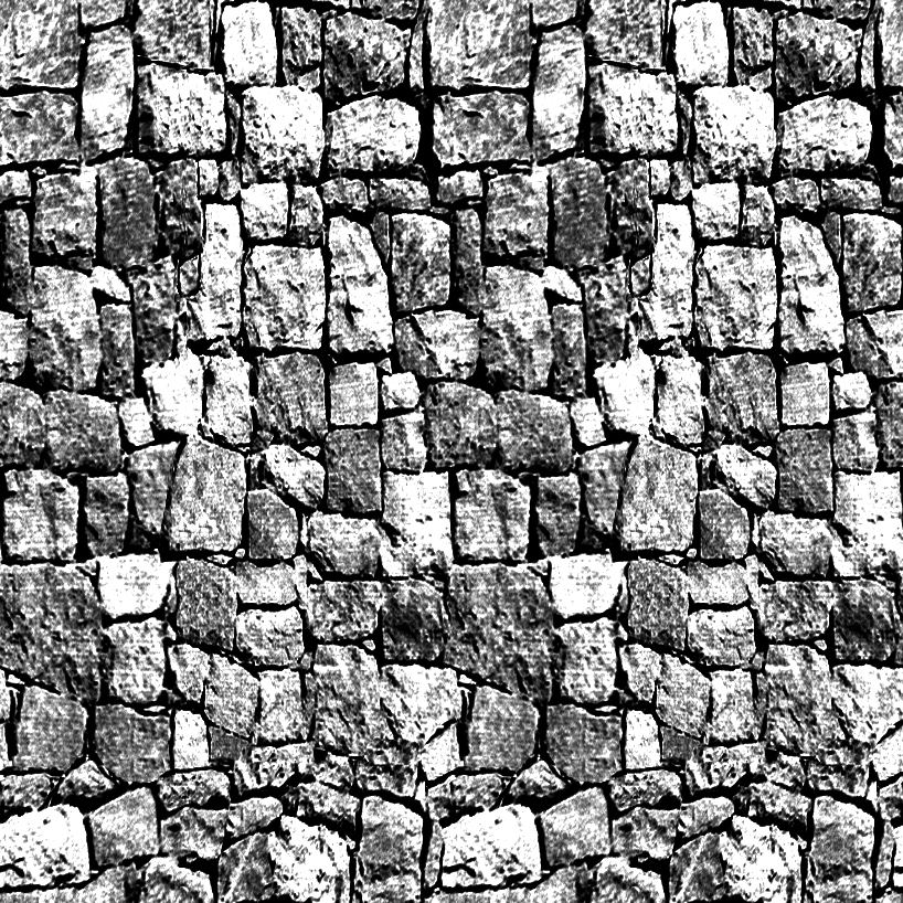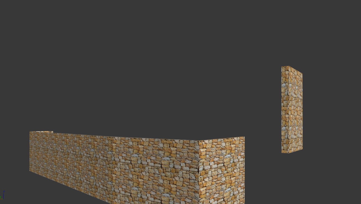 Esa textura sigue estando mal, si te fijas, las piedras están en vertical, cuando constructivamente y por lo general, por peso, lo lógico es que se coloquen formando el muro en horizontal. Aparte, es más que evidente que sigues teniendo una repetición de patrones en la textura, piedras iguales, ¿Por que no intentas buscar una textura parecida con mejor calidad?