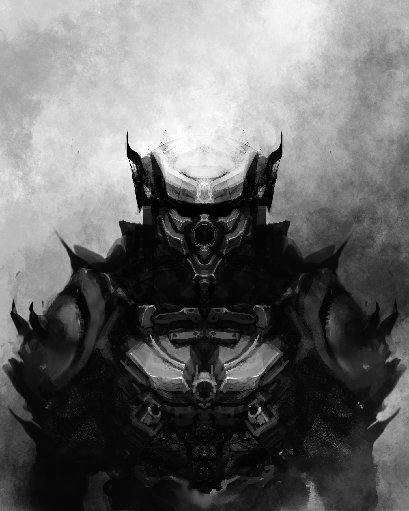 Me encanta Krita. Yo también ando a full con él. Me gusta mucho el boceto, aunque quizá quedaría bien hacerlo un poco más asimétrico. La nube blanca abajo a la derecha ayuda, pero cambios estructurales en la armadura creo que le darían el punto: un pincho más corto que el otro (en los hombros) algún botón distintivo en uno de los dos lados. Pero vamos, está genial y me encanta el trazo. Buen curro.