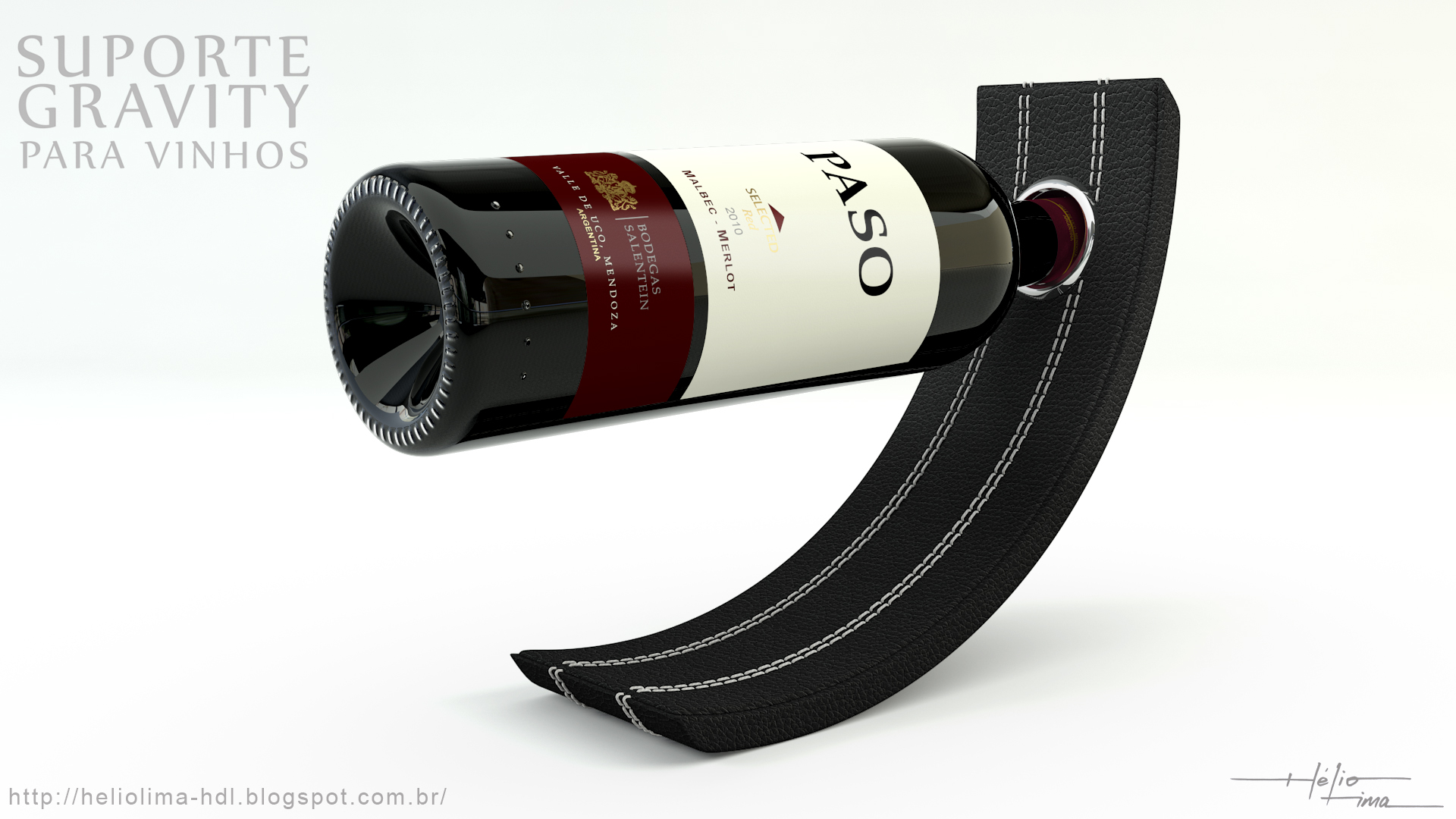 Modelado de el apoyo a los vinos, que utiliza el peso de la botella para mantener el equilibrio (no sé quién es el creador de este diseño de producto).