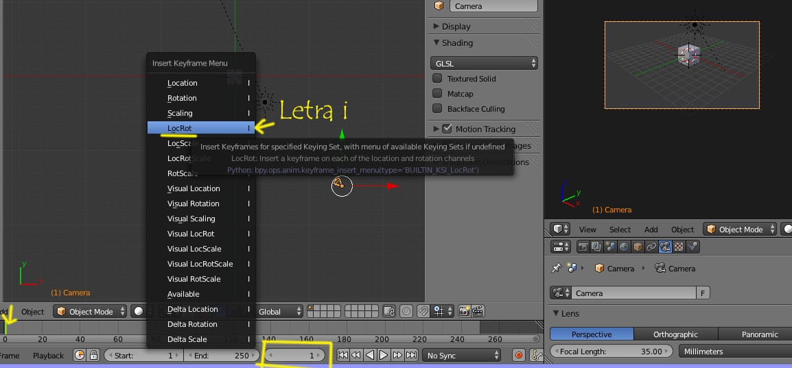 Luego cambias de frame -- mueves la cámara y vuelves a presionar letra i LocRot.