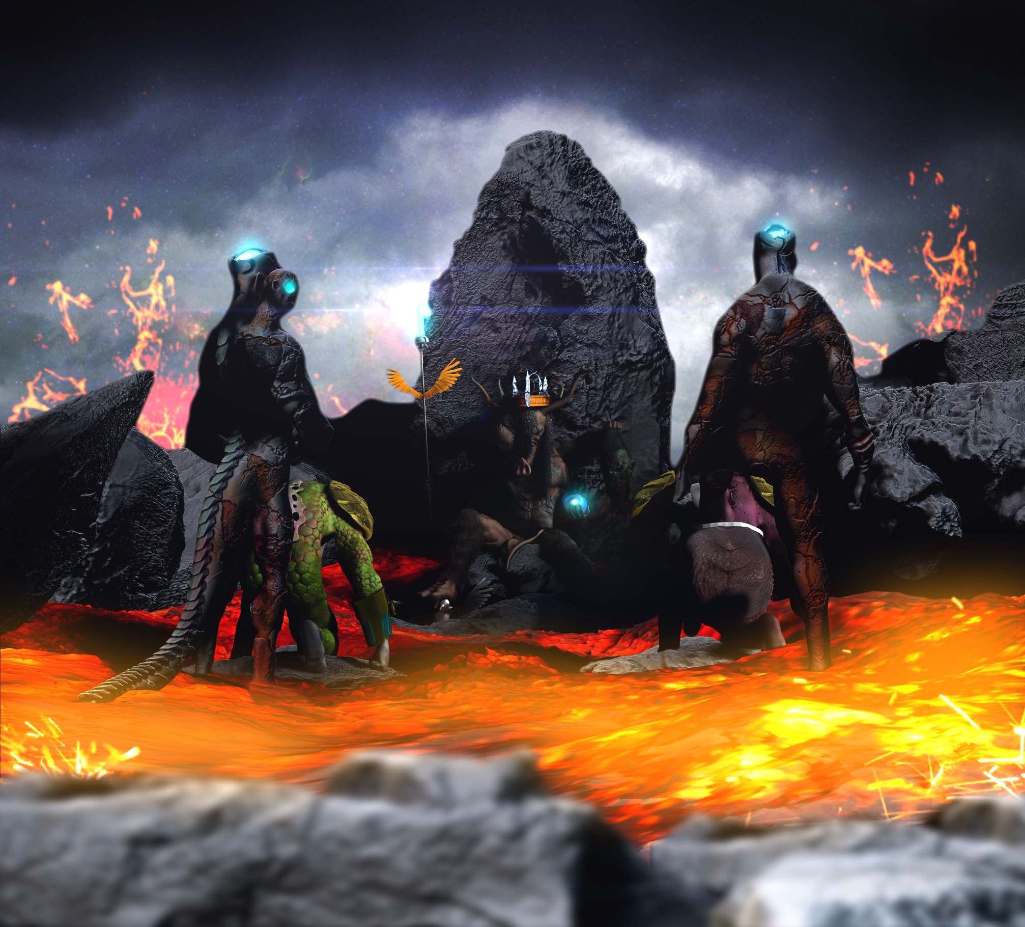 Si el de medio es decir el dictador tiene 4 brazos una con la qué sujeta la bola, otra con la qué sujeta el cetro otra con la qué sujeta la cabeza del orco y otra con la qué sujeta la corona qué se la está poniendo por eso puede parecer que no está del todo apoyada en la cabeza por que aún no se la ha puesto del todo. Intente mucho iluminar todos los brazos, pero se perdía la oscuridad de la escena la tenebrosidad así que, opte entre un intermedio por que era muy difícil conseguir un buen balance entre iluminación y oscuridad de todas formas, me alegro que me lo critiquen y que te guste algo de el.